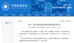 名单公示 | 第十一届中国免疫学会学术奖获奖名单