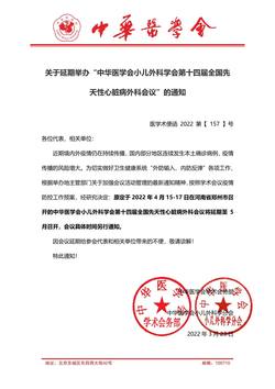 延期通知 | 中华医学会小儿外科学会第十四届全国先天性心脏病外科会议