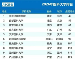 排行榜单 | 2026“医科大学”排名更新,协和领跑,首医大第二,天津医大第五,重医大第七,广医第十,皖医第28