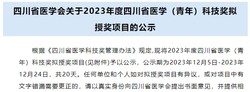 名单公示 | 四川省医学会关于2023年度四川省医学(青年)科技奖拟授奖项目的公示