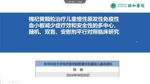 槐杞黄颗粒治疗儿童慢性ITP疗效与安全性的多中心、随机、双盲、安慰剂平行对照临床研究