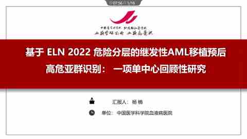 基于 ELN 2022 风险分层的继发性AML移植预后高危亚群识别: 一项单中心回顾性研究