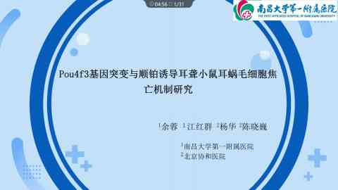 Pou4f3基因突变的敲低和突变通过NLRP3/caspase-3/GSDME通路促进顺铂致耳聋小鼠耳蜗焦亡