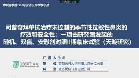 司普奇拜治疗未控制的季节性过敏性鼻炎的疗效和安全性:一项由研究者发起的随机、双盲、安慰剂对照II期临床试验(天璇研究)