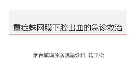 重症蛛网膜下腔出血的急诊治疗